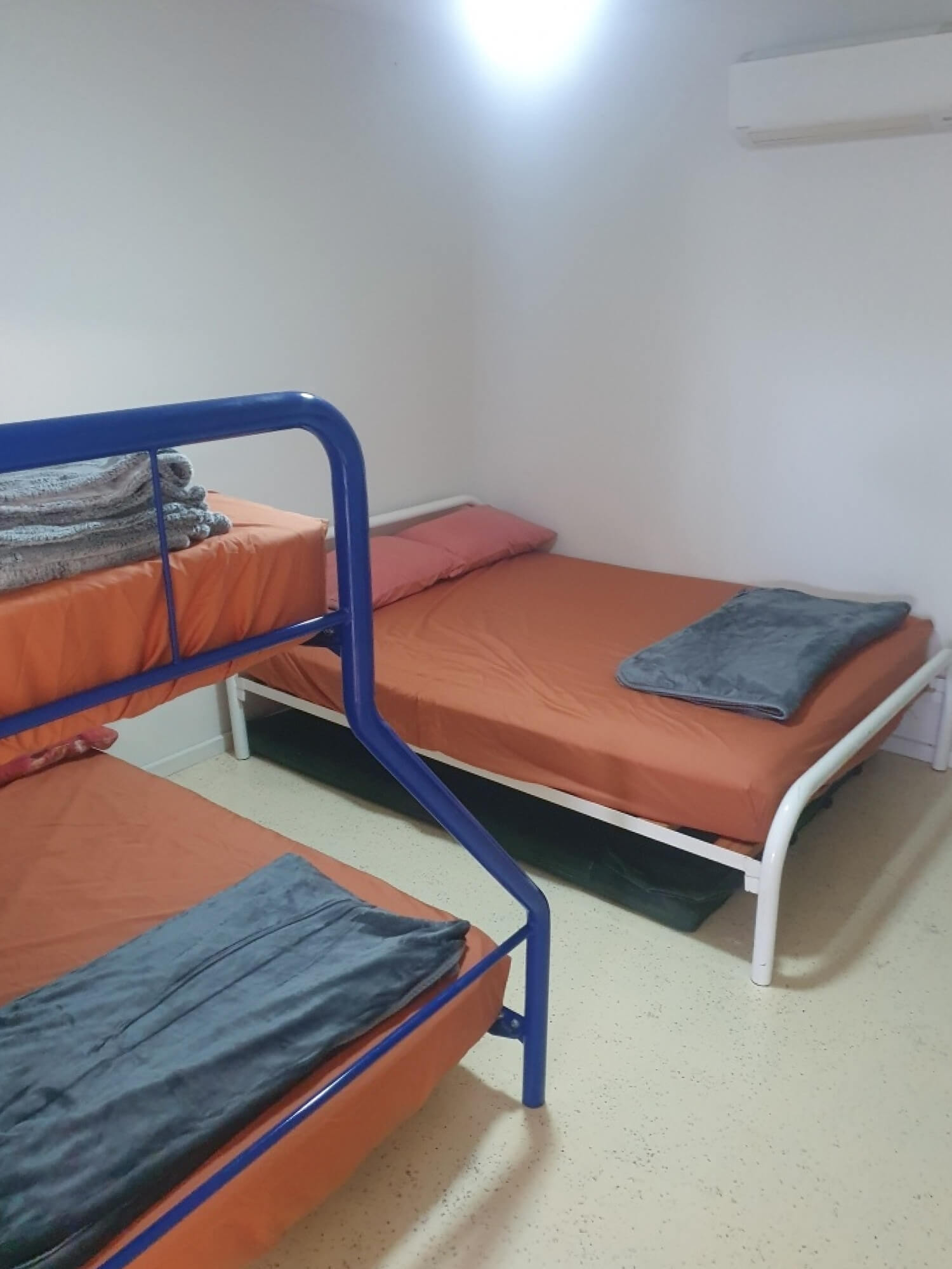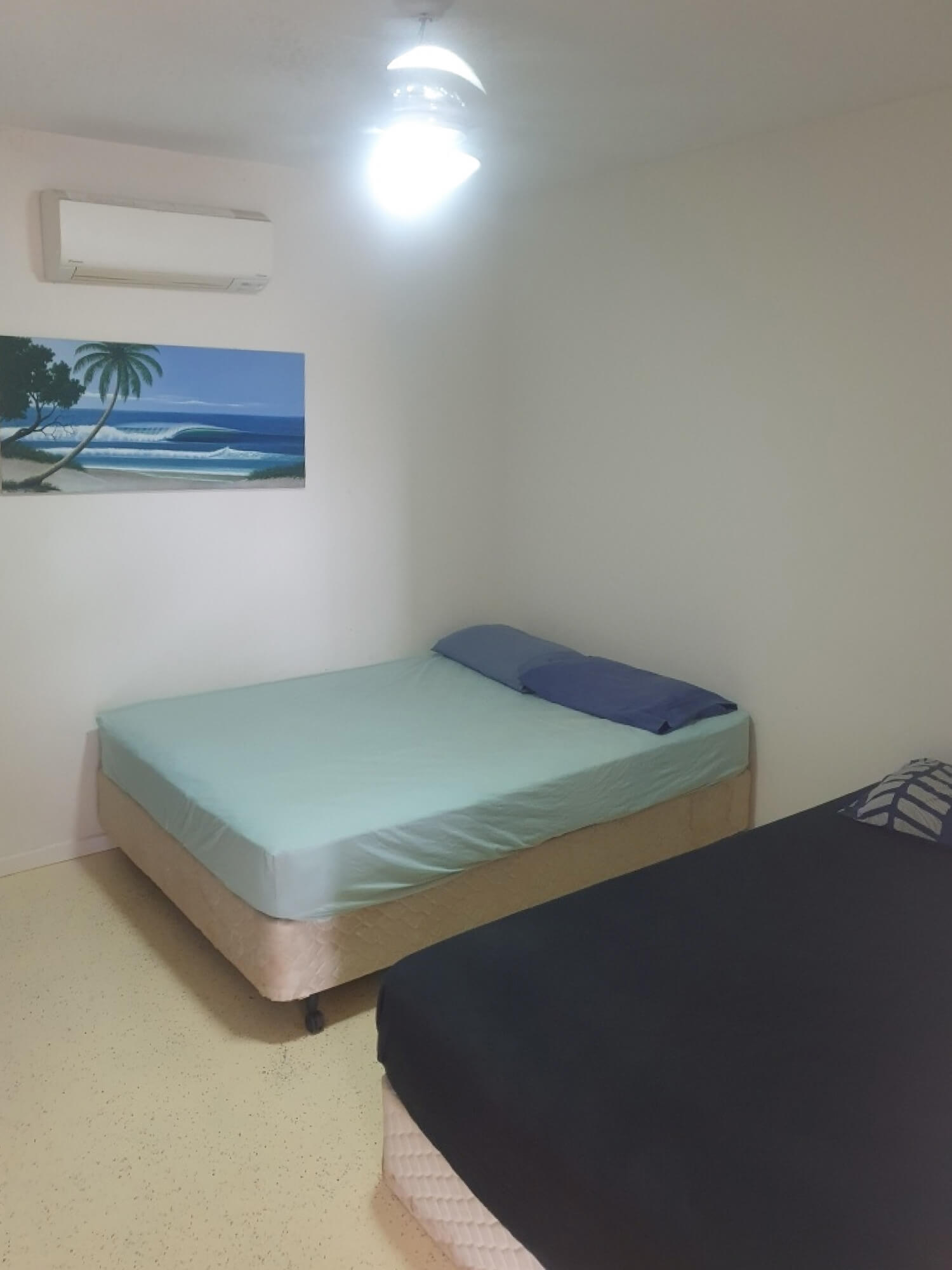 Two bedrooms with 3 queen beds, a double, and a single bed, plus a sofa.